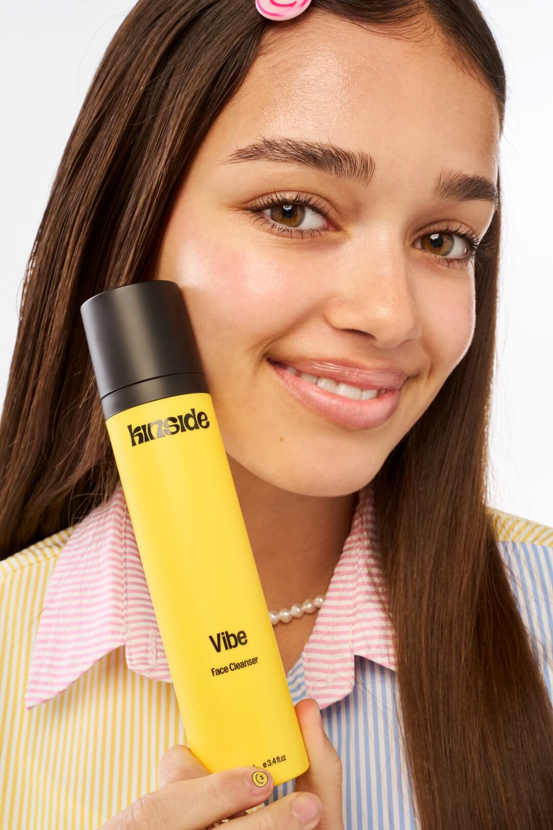Wet your face with lukewarm water and dispense 1-3 pumps of Vibe Cleanser onto your palm. Using your fingers, gently massage the cleanser onto your face in a circular motion. Pay attention to the T-zone (forehead and nose) and U-zone (chin and jawline). Rinse off with lukewarm water and pat dry, or wipe away excess product with Kinside’s Buddy Face Cleansing Cloud. Use day and night for full-throttle vibes.